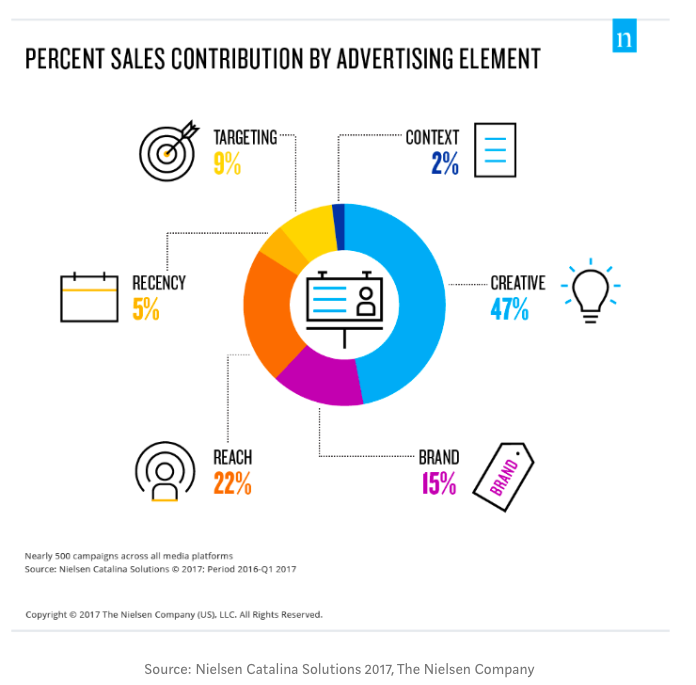 - 닐슨 조사에 따르면 타겟팅 보다는 소재(Creative)가 가장 높은 ROAS를 기록했다.