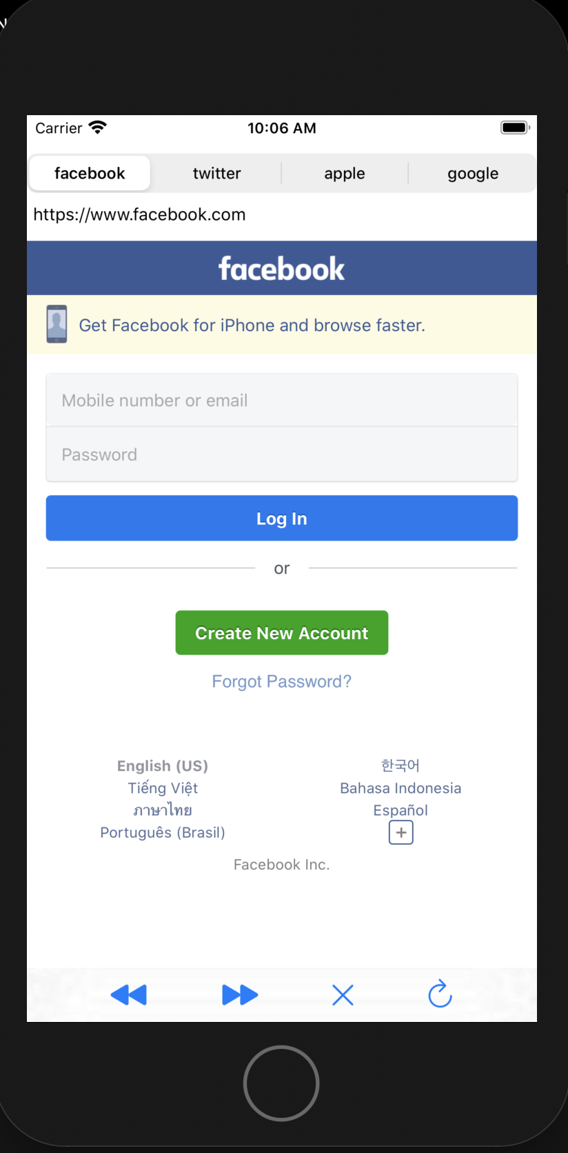 - bar button > system item : rewind / fast forward / stop / refresh로 각각 추가
